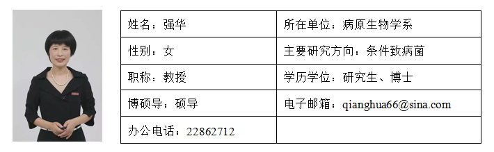 强华,女,1966年出生,汉族,医学博士,病原生物学系教授,硕士生导师,1988年毕业于福建医学院临床医学系获学士学位,1998年于a片动画 获微生物学专业硕士学位,2007年于武汉大学获病原生物学博士学位。现任病原生物学系主任,基础医学专业负责人,福建省医学会微生物学与免疫学分会委员。研究方向:医院感染条件致病菌。近年主持福建省自然基金2项、福建省教育厅课题2项、福建省科技计划项目1项、福州市科技项目1项、a片动画 科研课题2项。发表论文20篇,其中第一作者SCI、国家及学报级论文12篇。获省科技进步三等奖(第5作者)一项。承担《医学微生物学》、《病原生物学》、《分子病毒学》硕士生及本、专科学生的教学任务。积极参加教学改革,主持福建省教改课题2项,a片动画 教改课题2项,参与a片动画 教改课题2项。主编、副主编教材6部,曾获a片动画 教学教课比赛一等奖、校教学成果一等奖一项、二等奖两项、优秀党员、a片动画 第四批骨干教师、a片动画 首届学生心目中好老师、a片动画 优秀教师等荣誉。2014年11月被福建省教育研究中心聘为“福建省教育评估专家”。