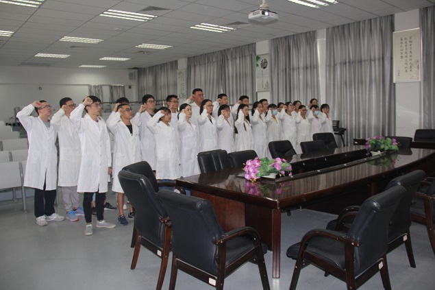 最后,林艺老师带领全体实习生穿着整齐的白大褂,进行庄严的医学生誓言宣誓。通过本次临床实习动员会,同学们进一步提高了对临床实习重要性的思想认识,对即将走向临床实习岗位充满了信心。