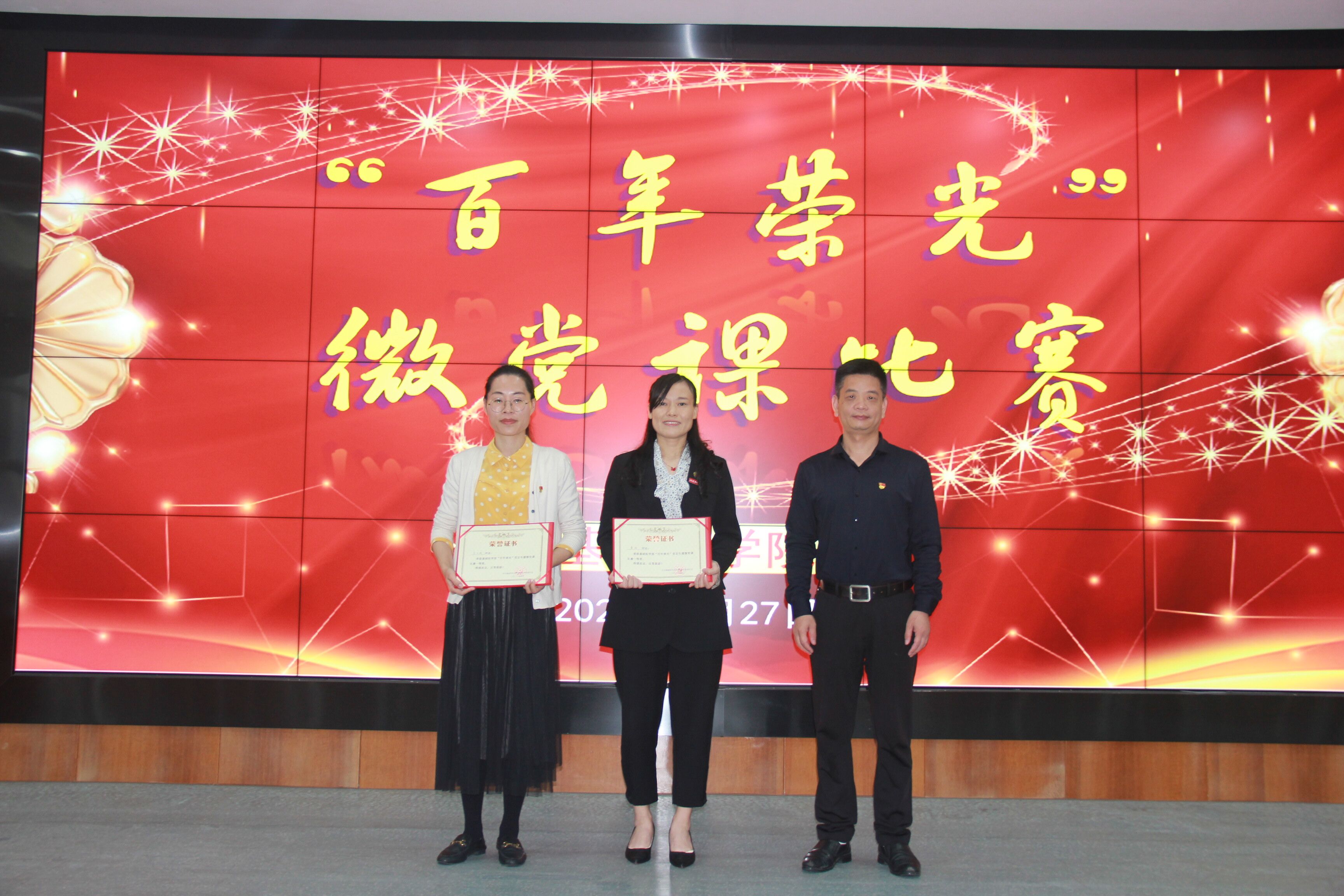 开班式后学院举办了“百年荣光”微党课比赛,福建工程学院马克思主义学院宋雪霞教授、学校党委宣传部杨新勇部长、学校教务处王世鄂处长担任评委,科研中心党支部书记柯荔宁主持比赛。经过激烈角逐,李丽、吴云丽荣获一等奖,刘晓如、郑敏、张丽虹、吴林青获二等奖,陈丽红、周莹、吴枝娟荣获三等奖。王玥、郑晨华、施佳健、陈亚乐(学生)获优秀奖,现场进行了颁奖。