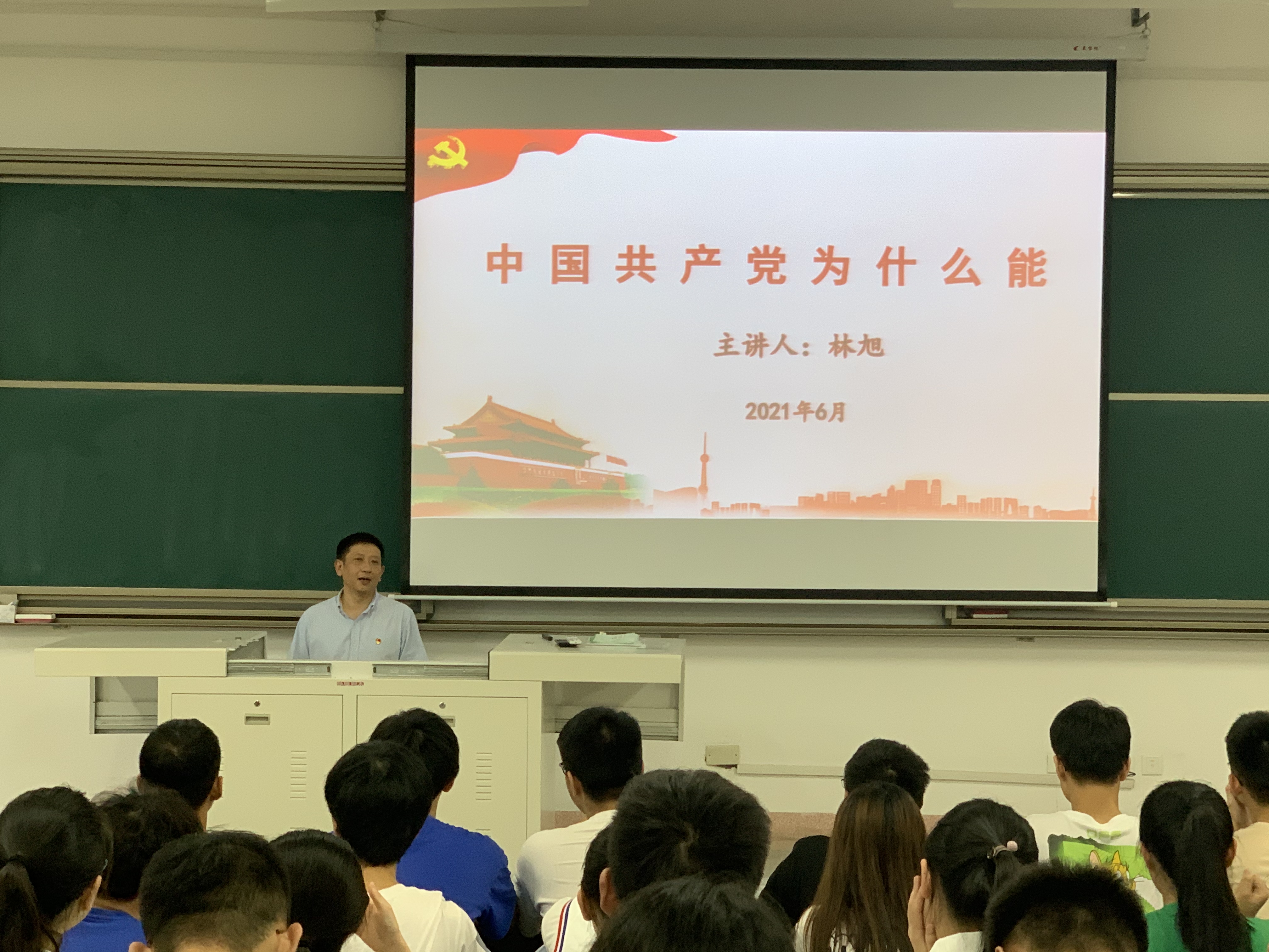 6月2日晚,林旭副校长在上街旗山校区81教室给2020级基础医学专业本科生上了一堂题为《中国共产党为什么能》的形势与政策课。