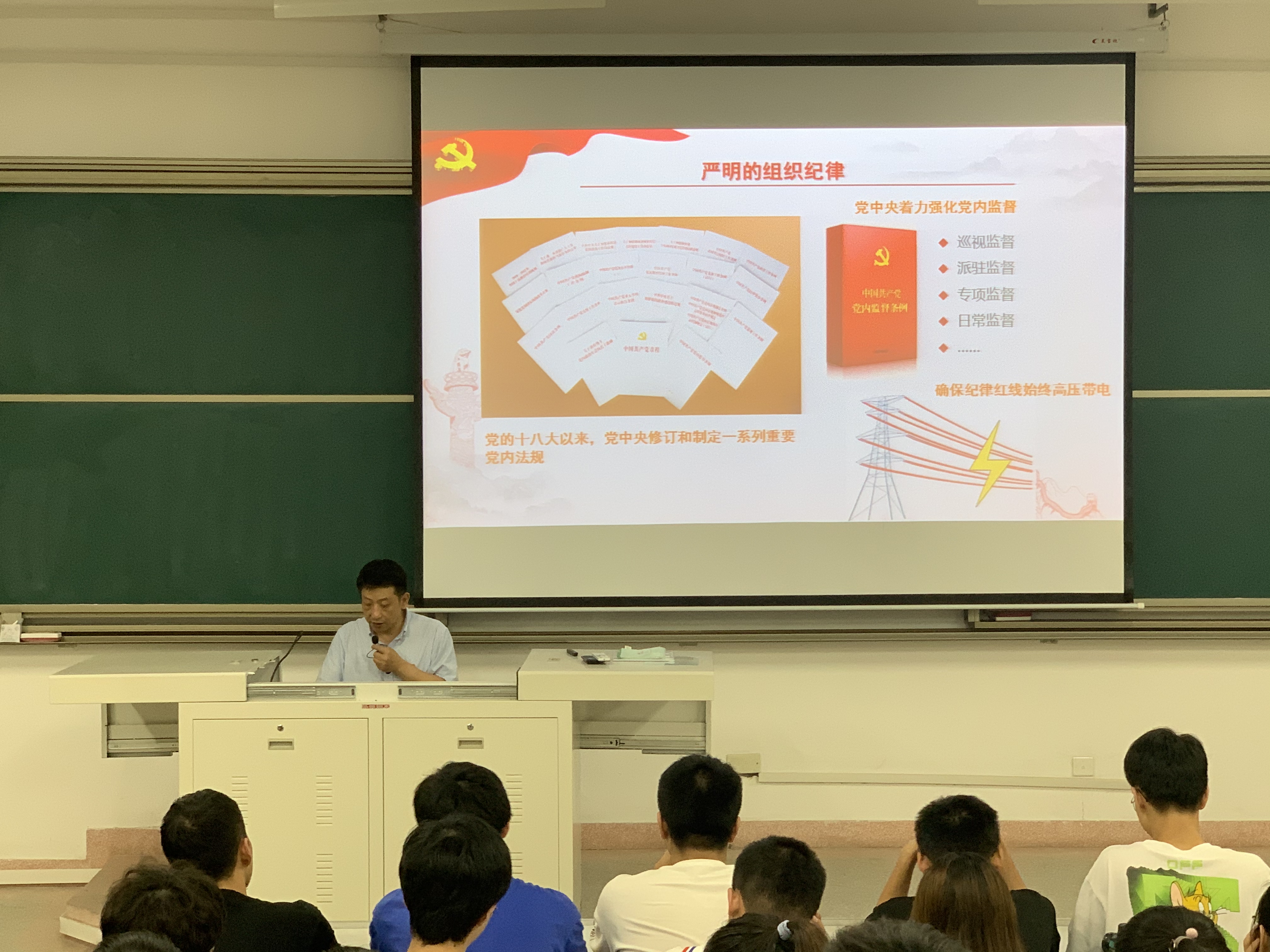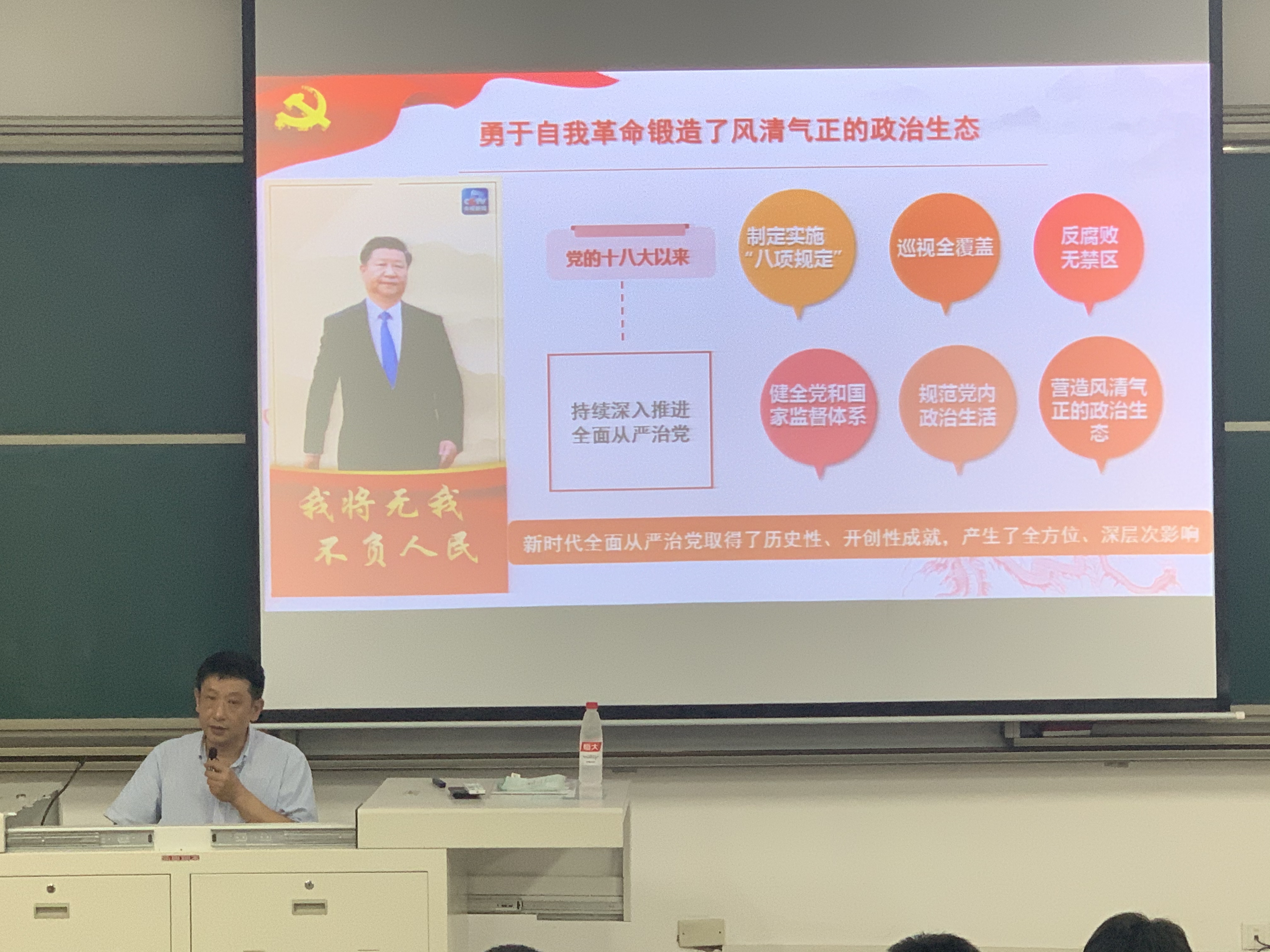 林旭老师以《中国共产党为什么能》为题,紧扣中国共产党百年发展历史,从“科学的理论指导”“坚定的理想信念”“强大的组织优势”“坚实的群众基础”“彻底的自我革命”五个方面,梳理了中国共产党作为百年大党,从一叶扁舟到巍巍巨轮,从小到大、由弱到强整整一个世纪不平凡的奋斗历程。本次课程理论联系实际,深入浅出,获得同学们的阵阵掌声。