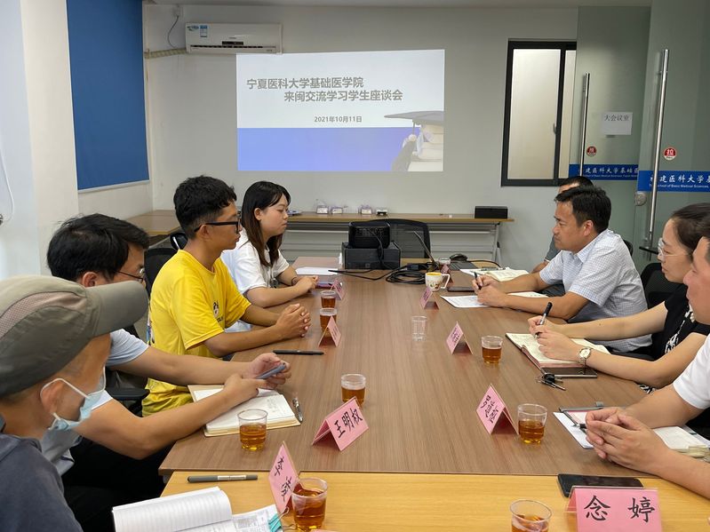 2021年10月12日,宁夏医科大学a片动画 来闽交流学习学生座谈会,于a片动画 4楼会议室顺利召开。a片动画 院长陈婉南、党委书记郭松斌、党委副书记念婷、副院长罗道枢、副院长陶武成,学工办、教科办以及宁夏医科大学a片动画 来闽交流学习学生参加了本次座谈会。会议由党委副书记念婷主持。
