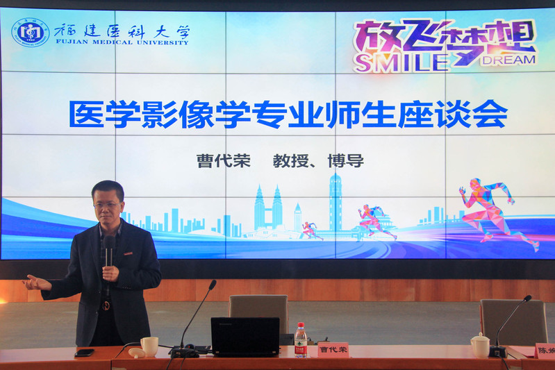 2021年12月10日,a片动画 于行政楼四层学术报告厅开展“砥砺奋进·医路前行”医学影像学专业思想教育暨“专家面对面”座谈会。本次专业思想教育邀请了a片动画 附属第一医院影像科主任、a片动画 医学影像学系主任,博士研究生导师曹代荣教授主讲。a片动画 陈婉南院长、郭松斌书记、念婷副书记、罗道枢副院长,学工办负责人,医学影像学教师代表,2021级医学影像学专业辅导员、班主任及全体学生参加本次座谈。