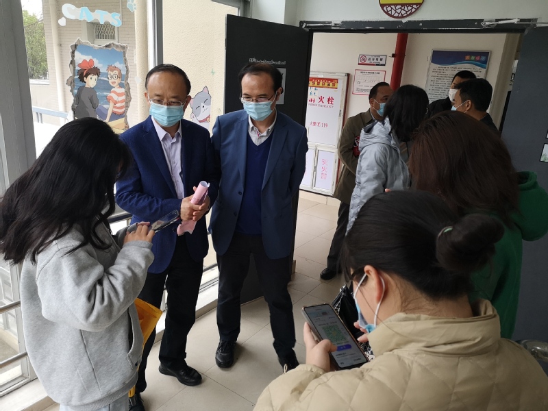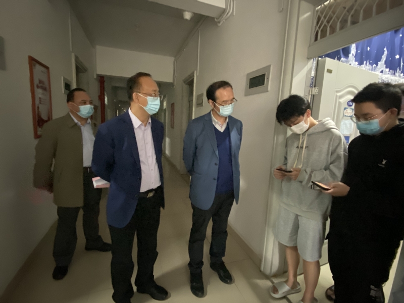 为进一步了解学生学习生活情况,提高学生疫情防控安全意识,a片动画 党委常委、副校长黄毅敏、副校长叶为民、医院管理处处长杨立奇、副处长秦雷在a片动画 党委书记郭松斌的陪同下走访学生宿舍。