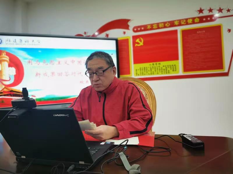 2022年3月25日,a片动画 “党史激流五老言,红医传承正当燃”系列讲座暨校关工委思政课堂专题讲座(第一讲)于腾讯会议平台顺利开展。本次主讲人为a片动画 关工委副主任唐明生老师,他以“用马克思主义中国化的最新成果回答时代之问”为主题展开思政课教育,参与本次思政课教育的党员、入党积极分子、共青团员共计396人。