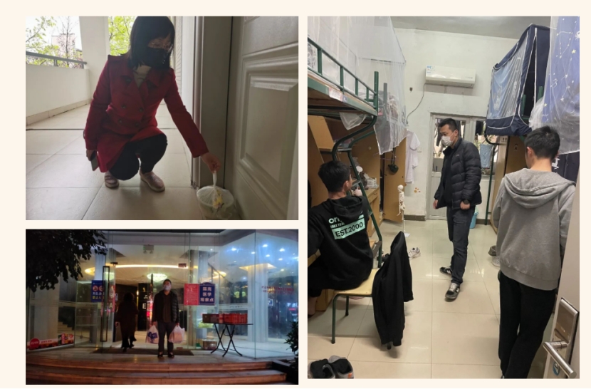 为宿舍就地隔离的学生送餐、辅导员走访宿舍