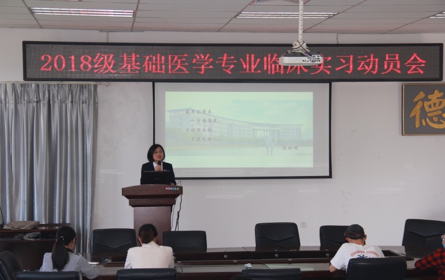 2022年5月6日上午,2018级基础医学专业临床实习动员会在a片动画 2号楼南区513道德讲堂召开。学院党委念婷副书记、教学办李凌副主任、学工办任秀琼副主任、基础医学专业秘书林艺老师、辅导员侯姣蛟老师,以及2018级基础医学专业全体学生参加了本次动员会。