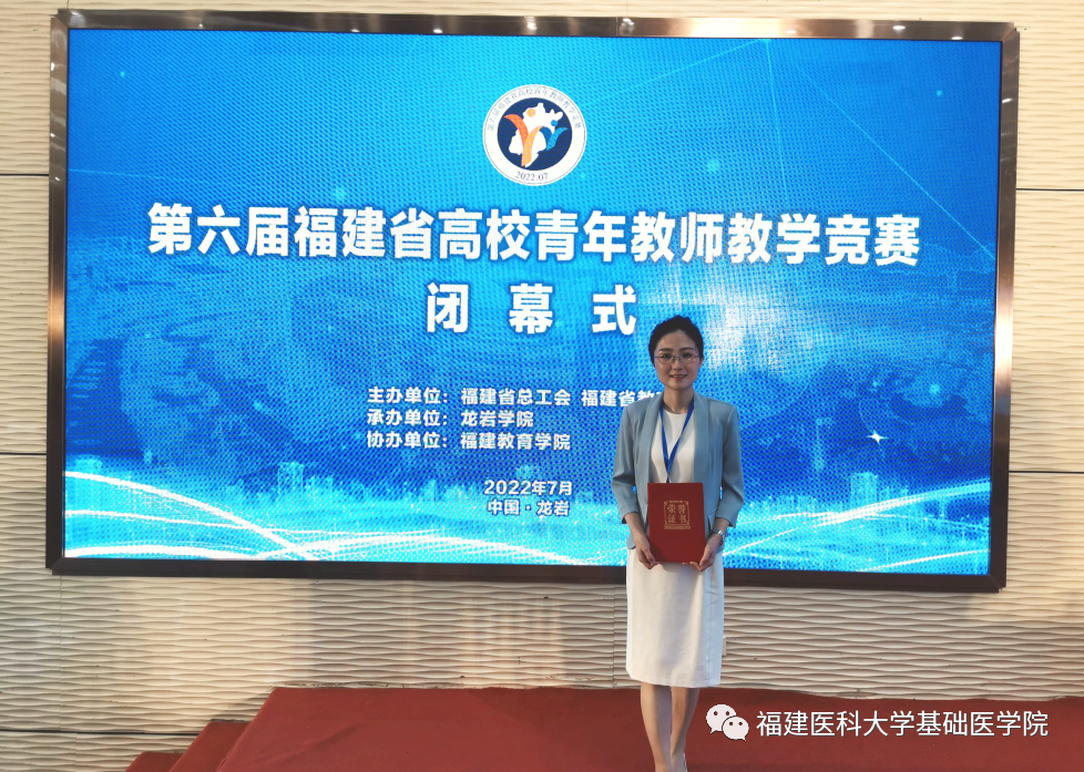2022年7月2-4日,由福建省总工会、福建省教育厅主办、龙岩学院承办、福建教育学院协办的第六届全省高校青年教师教学竞赛在龙岩学院举行,a片动画 病理学系教师郑琳获理科组二等奖。
