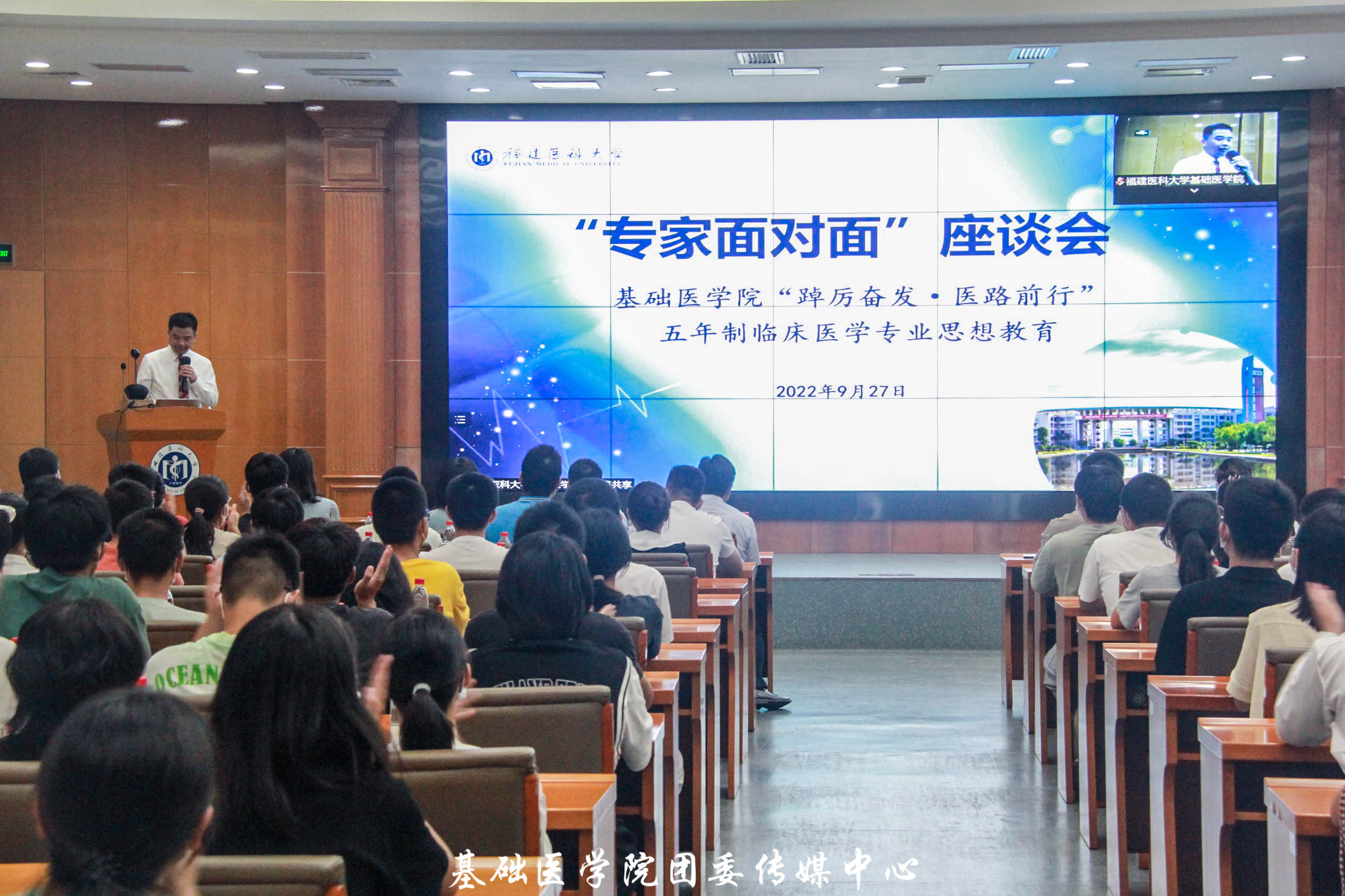 ·2022年9月27日,a片动画 “踔厉奋发•医路前行”五年制临床医学专业思想教育暨“专家面对面”座谈会于行政楼四楼学术报告厅顺利举行。本次专业思想教育座谈会邀请了a片动画 附属平潭协和医院副院长康明强教授主讲,a片动画 党政领导班子成员、全体辅导员,2022级五年制临床医学专业班主任等共同参与。本次活动由a片动画 党委书记郭松斌主持。