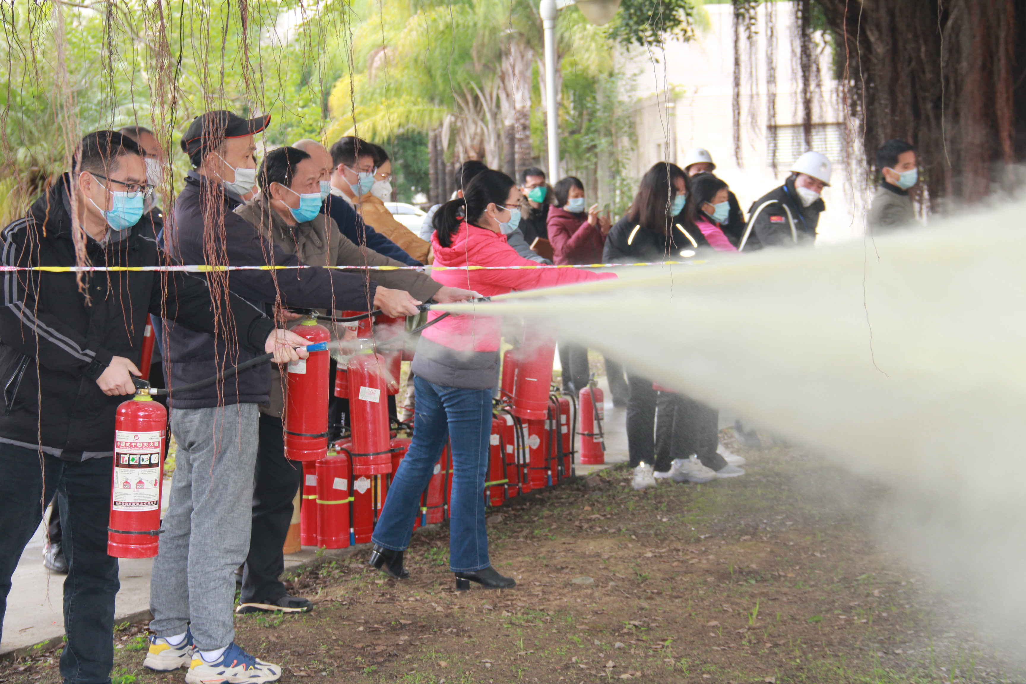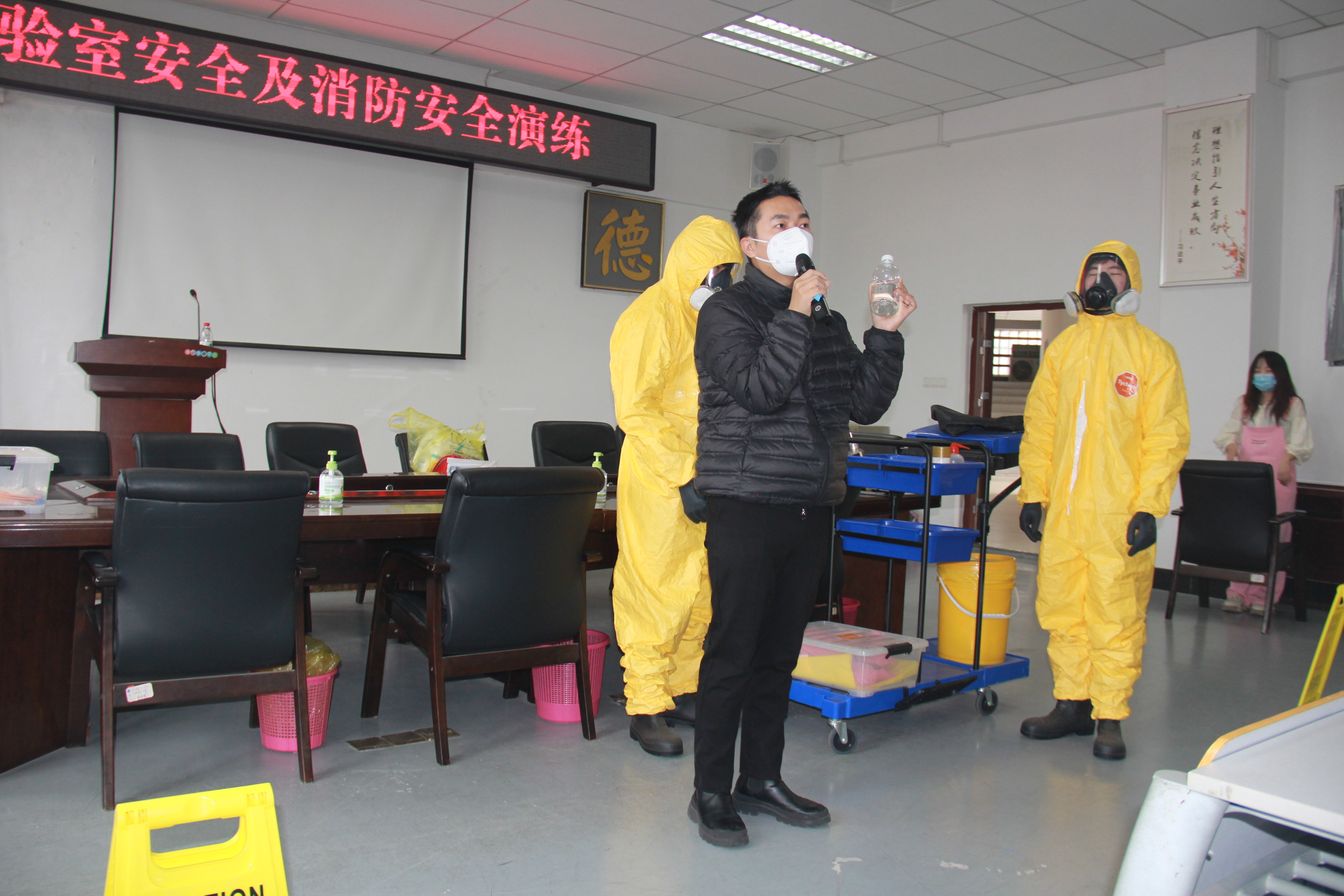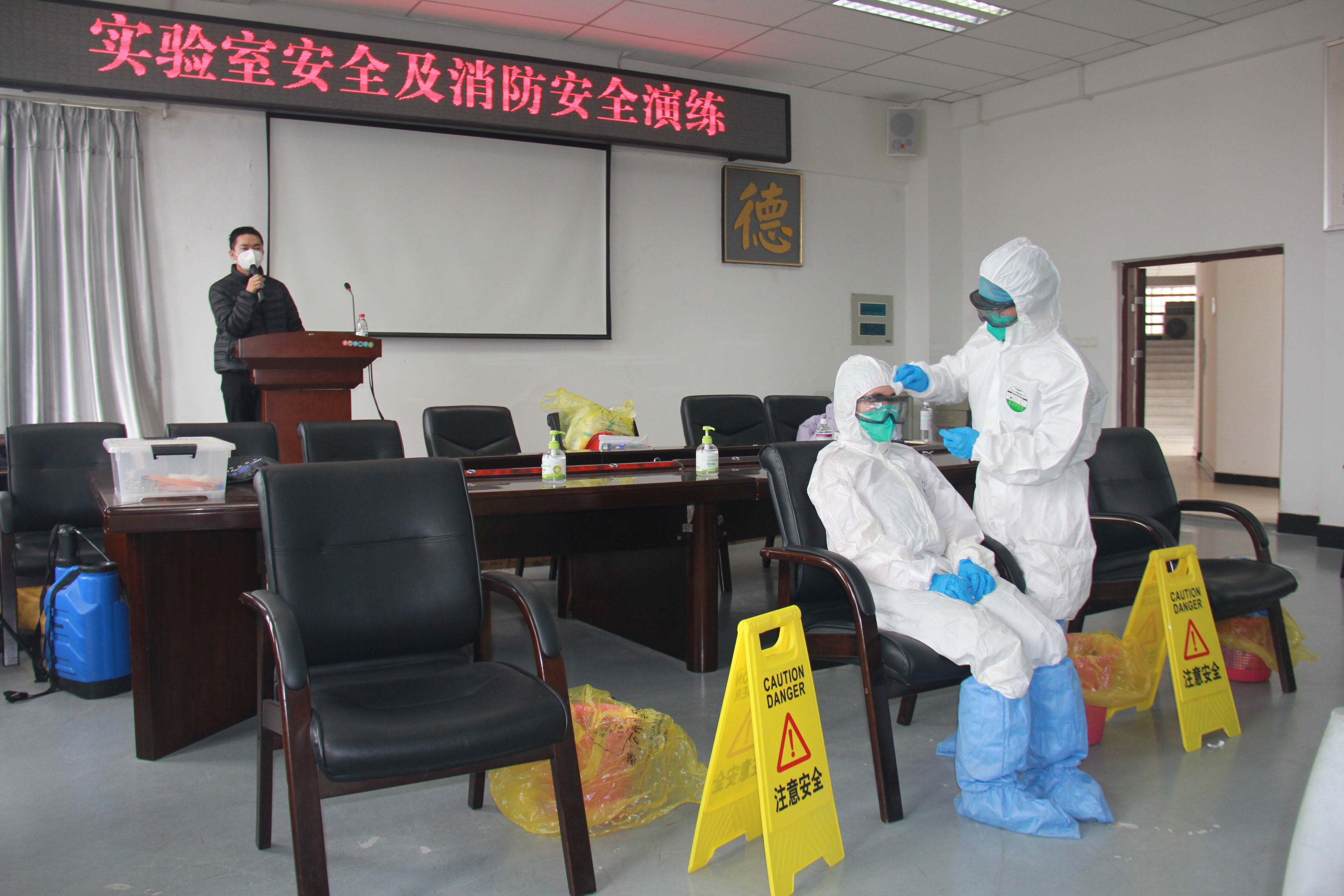 本次演练的内容分两个部分进行。第一部分是实验室安全应急演练,内容包括危险化学品泄露应急演练、病毒标本泄露应急处置等。第二部分是消防安全应急演练,内容包括消防疏散演习及灭火器使用操作演练。