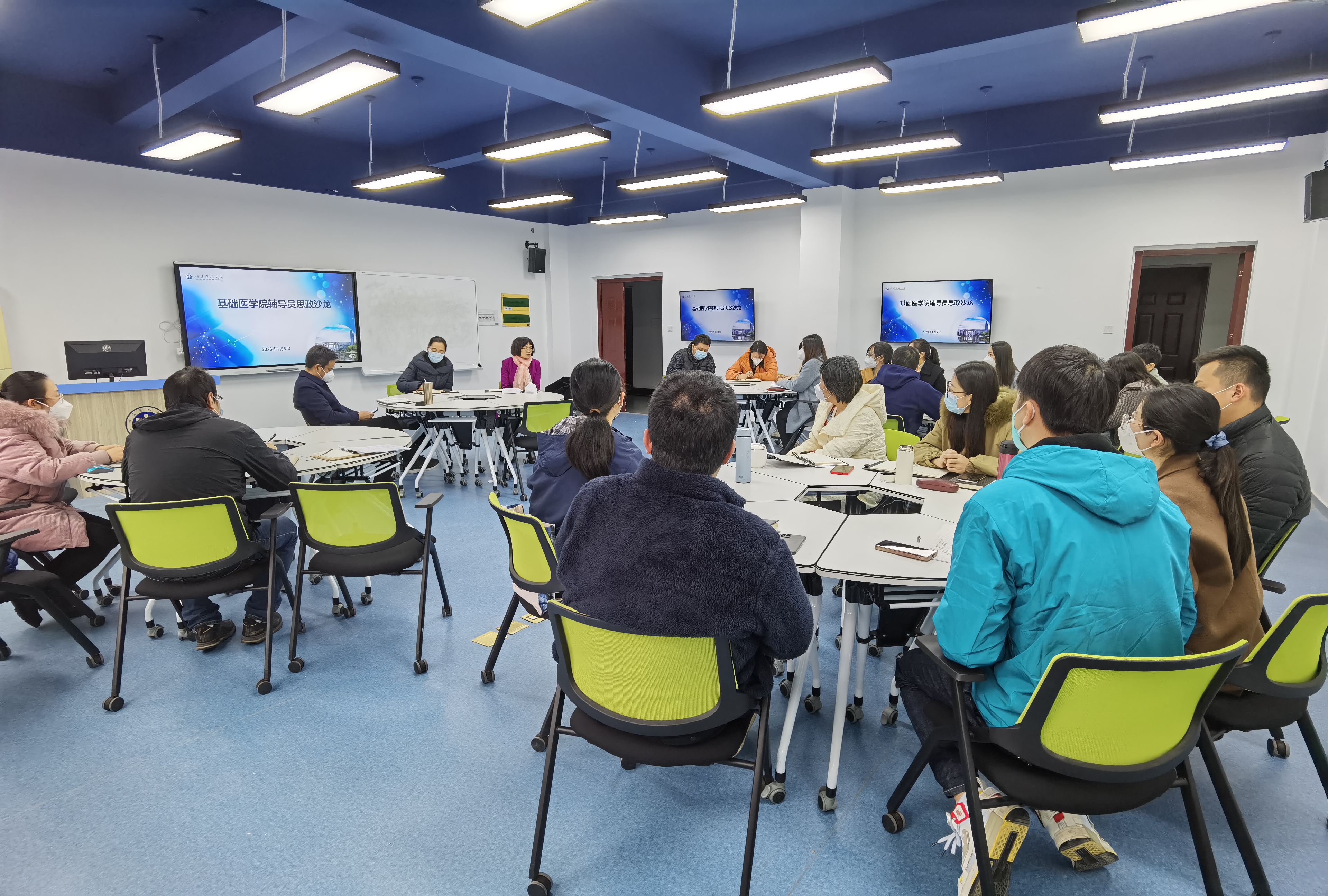 2023年1月9日下午,a片动画 在6号楼智慧教室305召开2023年第一期辅导员思政沙龙。院党委书记书郭松斌、院长陈婉南出席,本期沙龙由党委副书记高明主持。