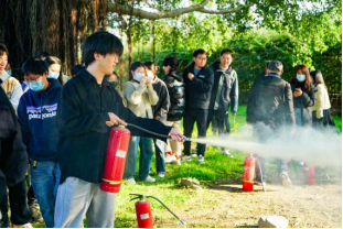随后保卫处老师向在场全体师生讲解灭火器的种类、检查和使用方法,并指导师生参与灭火器实战演练,使其熟悉与掌握灭火器等消防器材的使用。