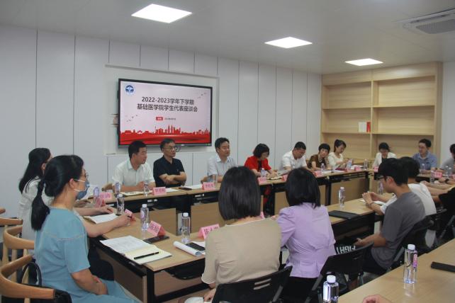 教学管理服务水平和教学质量,2023年6月7日下午,基础医学院于6号楼212学生活动室召开学习贯彻习近平新时代中国特色社会主义思想主题教育调研座谈会暨2022-2023学年下学期学生代表座谈会。学院领导班子、校院两级督导、教科办及学工办负责人、各学系/中心主要课程负责人和各专业年级同学代表近40人参加调研座谈会。