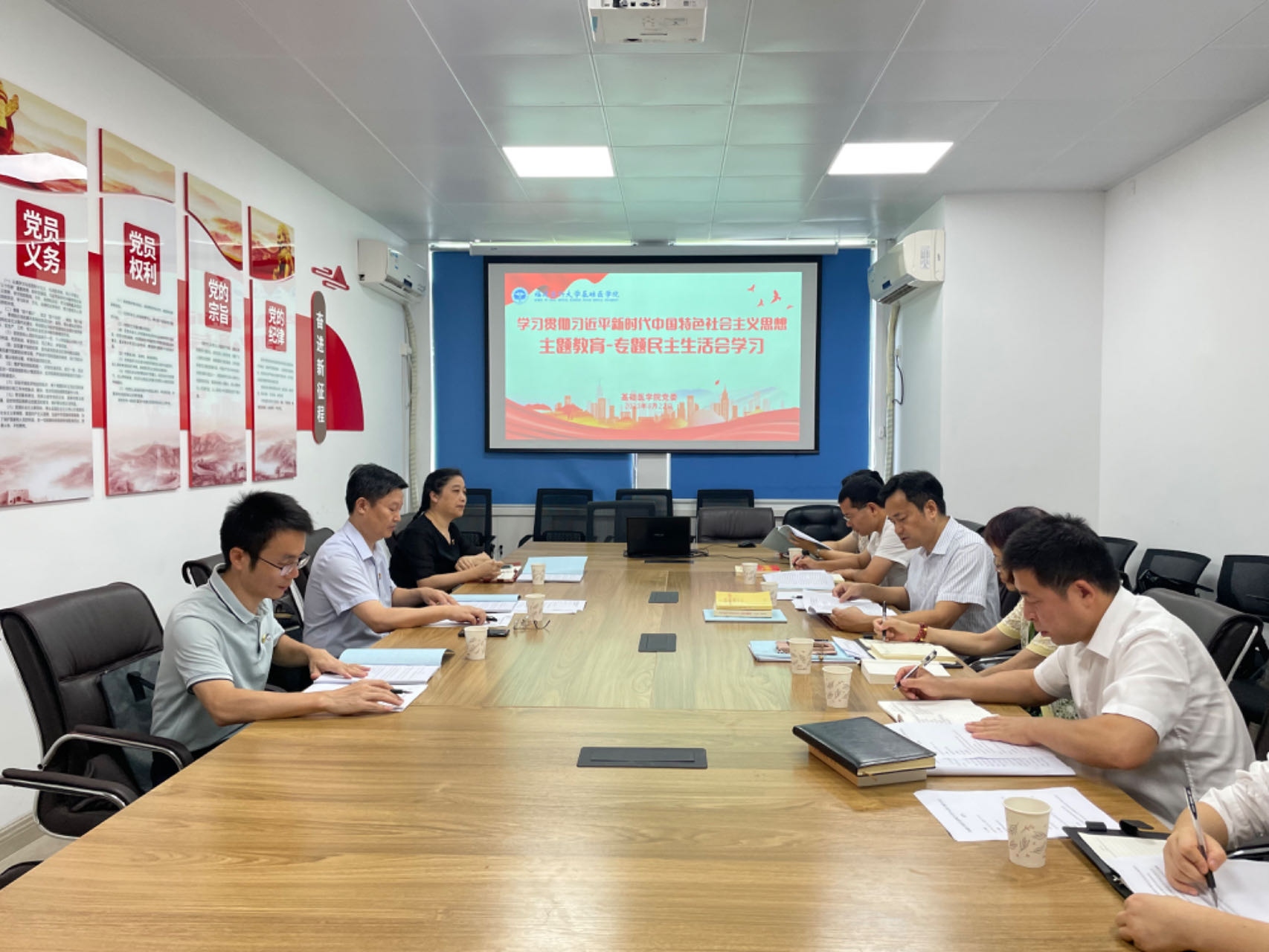 2023年8月22日上午,a片动画 在6号楼党员活动室,开展主题教育专题民主生活会会前集中学习,校党委常委、纪委书记魏和军到会指导。学院理论学习中心组成员参加会议,会议由党委书记郭松斌主持。