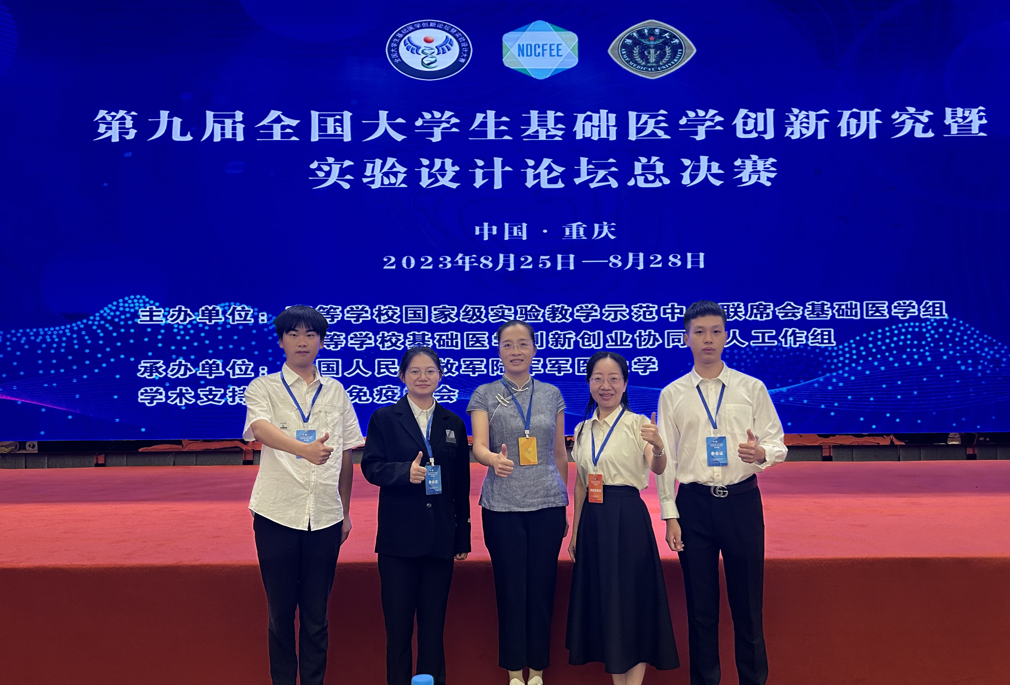 全国大学生基础医学创新研究暨实验设计论坛由高等学校国家级实验教学示范中心联席会基础医学组和高等学校基础医学创新创业协同育人工作组主办,今年已新增列入教育部《2023全国普通高校大学生竞赛分析报告》竞赛目录。本次第九届全国大学生基础医学创新研究暨实验设计论坛和“一带一路”国际论坛总决赛分别由中国人民解放军陆军军医大学和重庆医科大学承办。来自31个省份235所高校的4266项作品共21044名本科生参加本届大赛,为历届以来参赛规模最大的一届。经过校赛和区域赛的选拔,共有554项作品晋级总决赛。其中我院学子共有5项作品进入总决赛,包括3项基础临床主赛道作品和1项预防赛道作品,另有1项作品进入“一带一路”国际论坛决赛。