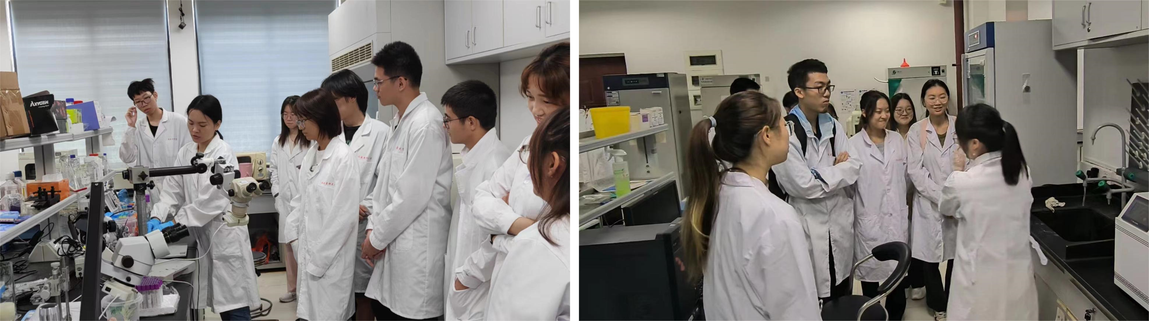 在第一周的科研转轮见习过程中,带教老师分别向学生认真细致地介绍各实验室规章制度、安全注意事项、各PI团队的课题方向和内容,带领学生参观了实验室,并动手参与部分实验操作和实验室日常劳动。同学们还参加了实验室组会、Journal Club等学习活动,对基础医学科学研究表现出浓厚的兴趣。