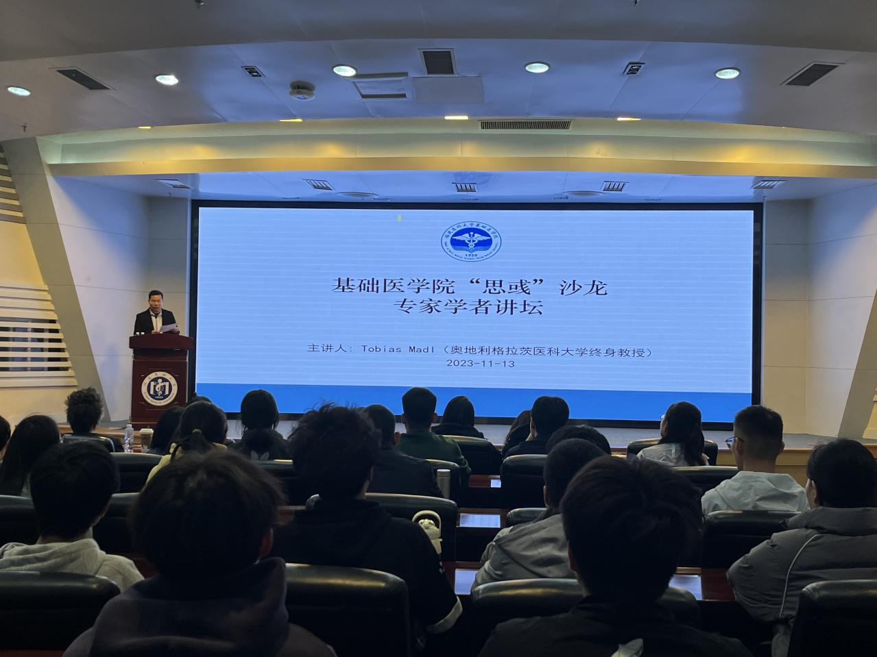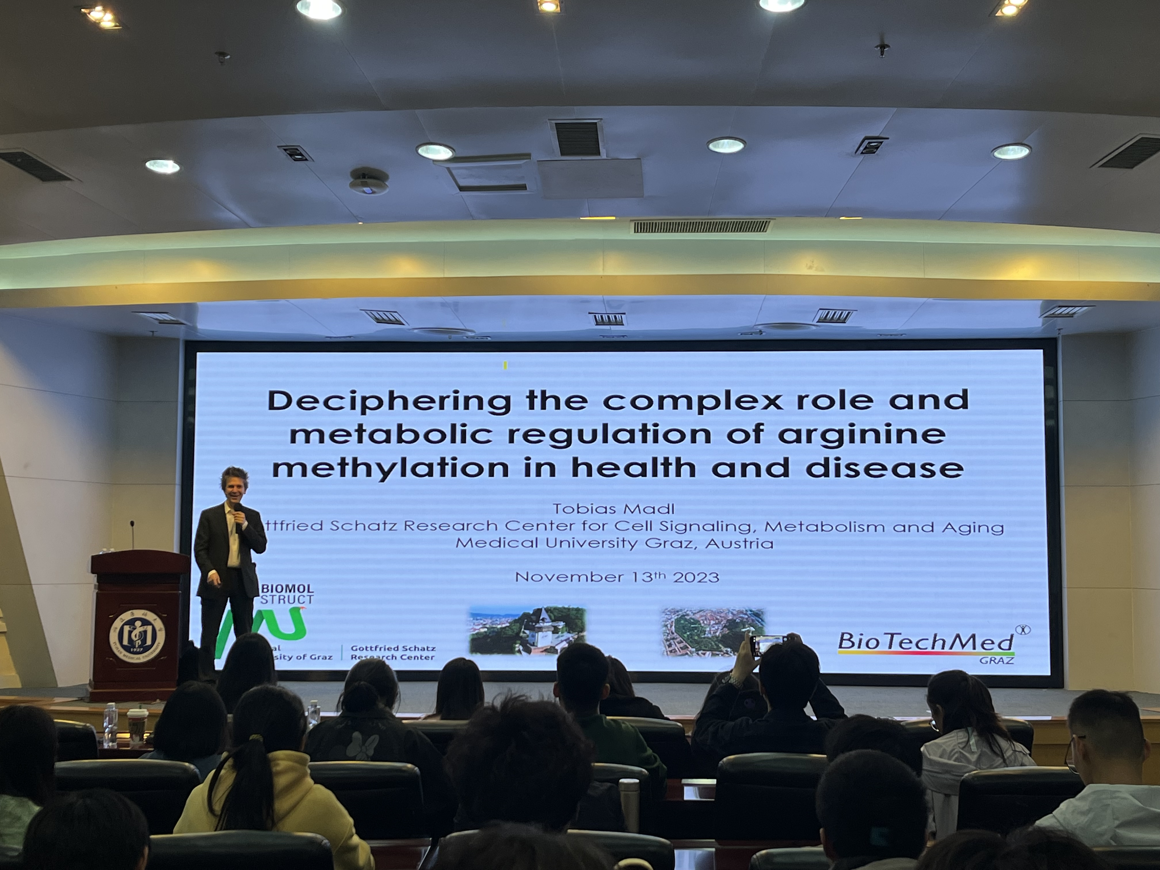 我院2023年11月13日在图书馆学术报告厅举办a片动画 “思或”沙龙——专家学者讲坛。本次讲座由a片动画 陶武成副院长主持,特邀奥地利格拉茨医科大学终身教授Tobias Mad作题为“Deciphering the complex role and metabolic regulation of arginine methylation in health and disease”的精彩报告,学院90余名师生参加。