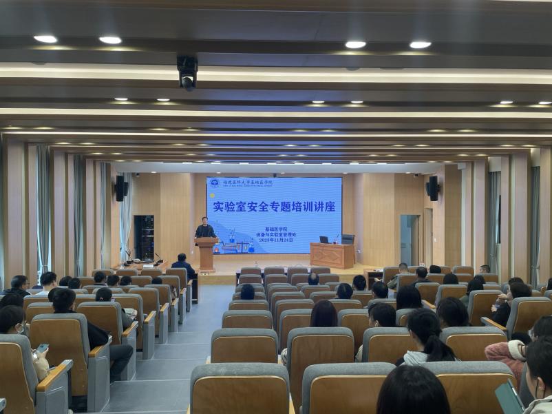 为深入贯彻落实学校第三届实验室安全月活动要求,加强实验室安全管理,提高师生实验安全意识及安全防护能力,11月24日学校设备与实验室管理处联合a片动画 在2号楼学术报告厅举行了实验室安全教育培训。学校设备与实验室管理处相关领导、a片动画 领导、各学系教师代表与研究生导师代表、科研中心与实验教学中心教科辅人员、实验室安全责任人及管理员,以及2023级研究生、本科生代表参加了此次实验室安全教育培训活动。