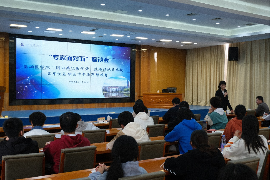 于11月24日在旗山校区行政楼学术报告厅开展“同心共筑医学梦,医路扬帆共起航” 2023级五年制基础医学专业思想教育暨“专家面对面”座谈会。