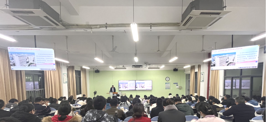 最后,林旭寄语同学们,要坚定理想信念,苦练医学本领,锤炼品德修为,不断完善理论知识储备与实践技能训练。将青春梦融入中国梦,为我国医疗卫生事业的高质量发展贡献青春智慧和力量。