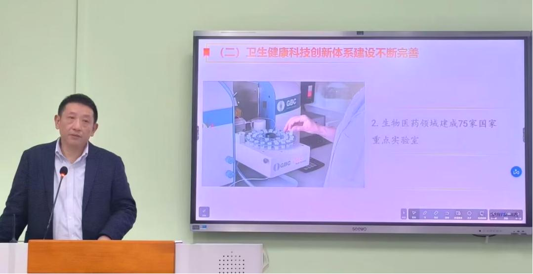 林旭以“加快建设健康中国”为主题,围绕“党的十八大以来卫生健康科技创新与医学教育工作进展成效”“加快健康中国建设的战略部署”“充分发挥医学院校的重要作用”等三个方面进行讲授,向同学们深刻阐明了加快推进健康中国建设对推动我国医疗卫生事业的发展,以及守护人民群众的生命健康具有重要意义。