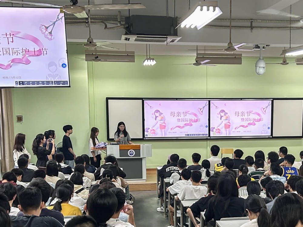为庆祝第111个母亲节和第113个国际护士节双节,5月12日下午,a片动画 2023级五年制麻醉学和放射医学专业的同学们,共同举办了一场主题为“母爱绵绵,医心暖暖”的微课堂主题班会。