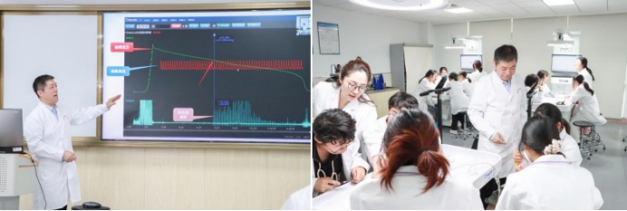 本次示范课程由全国模范教师、南京医科大学高兴亚教授执教,以运动对心血管系统功能影响及ESP动脉血压调节虚拟仿真实验为主题,创新构建了三维融合教学模式。课程采用虚实联动教学策略,有机整合理论阐释、虚拟实验与临床实践三大模块:通过系统阐释血压计工作原理,搭建基础医学与临床应用的认知桥梁;依托虚拟仿真平台,有效激发学生探究式学习潜能。各校学生通过线上协作,对东西部不同地域学生的实验数据进行分析讨论,深入探讨运动对心血管功能的影响机制,进一步深化了对生理机制的理解。