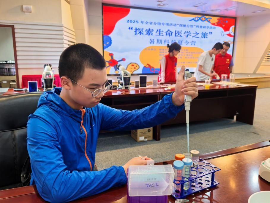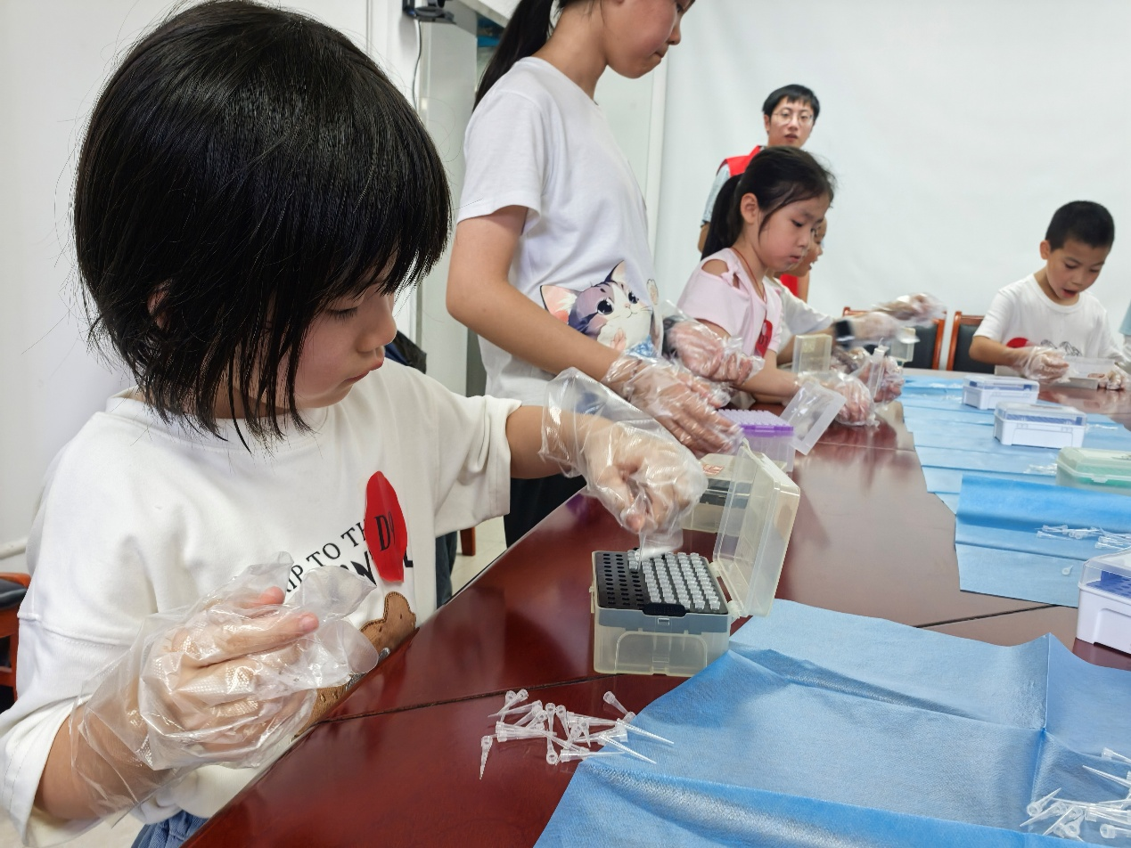 “试剂调配专家”实践课堂中,小朋友化身“小小实验员”,亲手操作移液器精准取液,用掌上离心机助力溶液混合。在工作人员指导下,孩子们专注完成三种液体的配置,沉浸式体验实验流程。专业仪器不再遥远,科学的奇妙在亲手实践中绽放,点亮孩子们的探索热情。