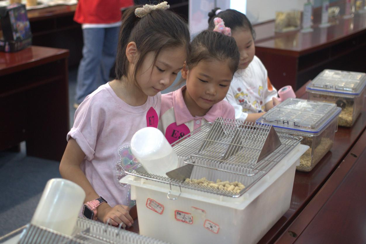 “参观小动物”环节,让小朋友们近距离接触小鼠、大鼠与斑马鱼,在工作人员指导下观察它们的外形特征与活动状态。鲜活的生命让抽象知识变生动,不仅满足了孩子们的好奇心,更种下科学探索的种子,收获家长们一致好评。