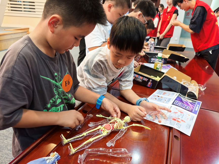 “人体探秘工坊”里,孩子们通过亲手组装人体器官、骨骼模型和“食物冒险记”角色扮演,了解了“食物在肚子里的旅程”,初步搭建起了人体解剖学知识体系。