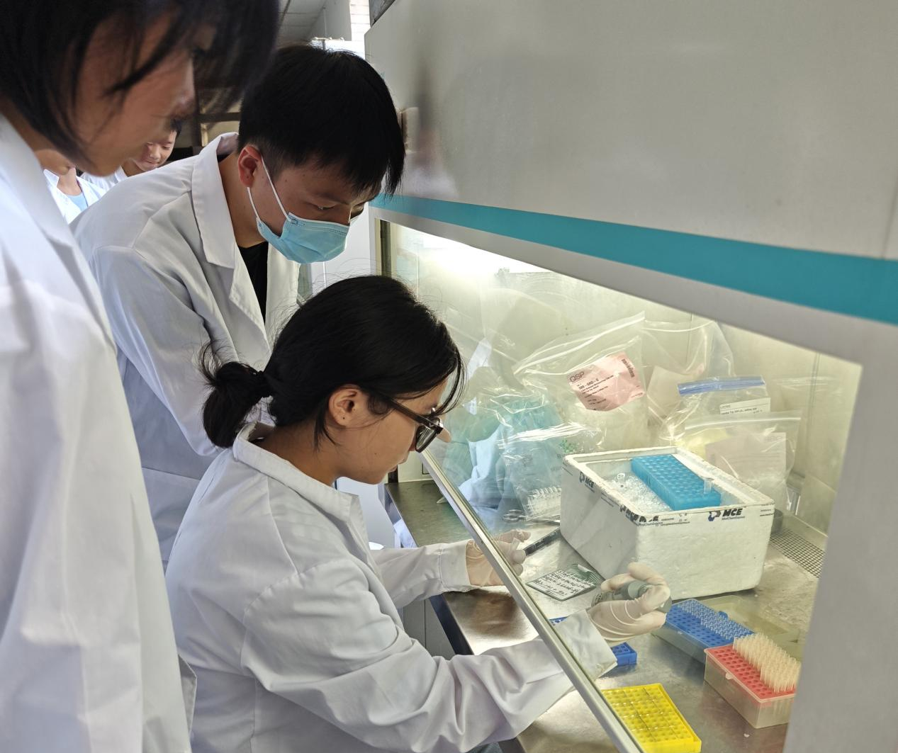 孩子们还走进教育部医药基础研究创新中心(脑功能与神经退行性疾病)、福建省癌症和神经退行性疾病转化研究重点实验室,穿戴白大褂和手套,作为“小小科学家”,尝试配制试剂、操作实时荧光定量PCR实验、观察成像结果、观摩小鼠水迷宫、转棒等神经行为学实验等。专注的眼神、开心的笑脸,对生命奥秘的惊叹和思考在孕育未来生命医学科学家的摇篮中闪闪发光。
