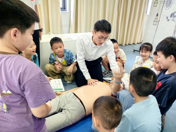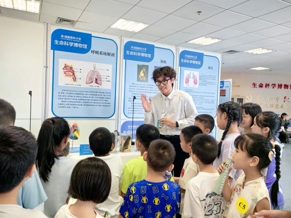小朋友们第一站来到由a片动画 建设和管理的a片动画 生命科学博物馆---这里也是全国科普教育基地以及福建省科技馆生命科学分馆。这里有不同阶段的人类胚胎及畸胎标本、心脑血管疾病、恶性肿瘤等常见病与多发病标本、塑化和铸型标本及心肺复苏、除颤仪等仪器设备,直观的人体和疾病标本以及互动体验感强的模拟仪器,一下子就把小朋友们都吸引住啦!“原来,出生并成长为健康的宝宝是如此幸运!”“快看,吸烟的肺和酗酒的肝脏这么可怕,我回去要监督爸爸了!”“掌握了心肺复苏和除颤仪技能,我也可以变身急救小超人呢!”孩子们眼神中充满求知的光芒,跟随着讲解员的脚步在馆藏大体标本、医学模型及模拟仪器间细致观察、反复练习、驻足流连。小朋友们犹如完成了一次“体内大航海”:从生命的种子到疾病的堡垒,再到拯救生命的技能,每一步都闪着好奇的光。这束光,或许就是未来白衣战士成长过程的第一束启蒙火苗。