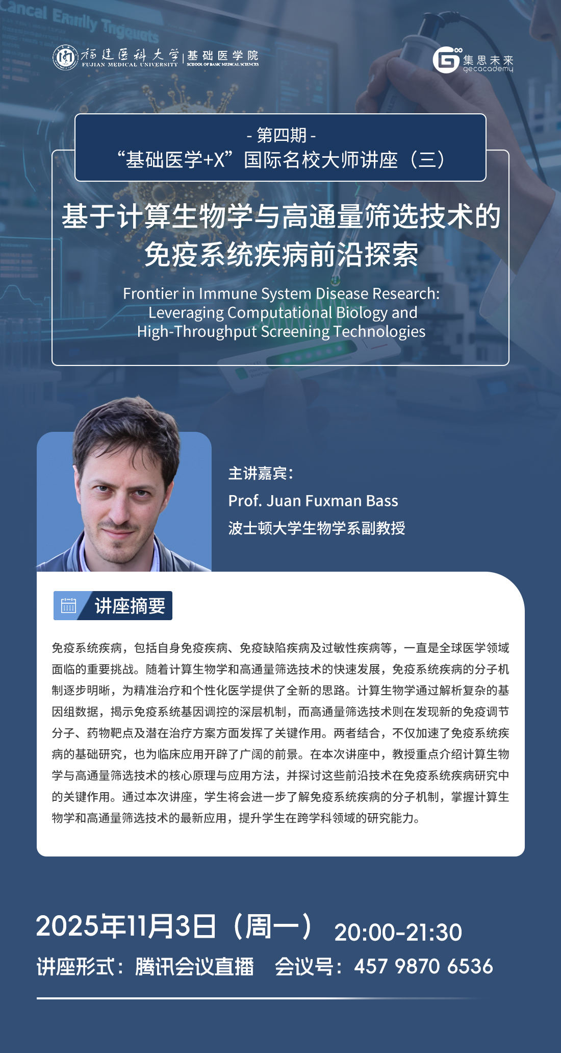 为促进学生了解以人工智能、大数据为代表的新一轮科技革命和产业变革下锚定基础医学疾病诊疗与研究的前沿研究方向与方法,探索医学与其他学科的交叉应用,培养国际化视野,探讨国际研究趋势和动态。a片动画 联合天津集思教育集团继续开展第四期“基础医学+X”国际名校大师讲座,主讲嘉宾为来自全球一流高等学府和研究机构的9位知名教授。现将该系列讲座(三)相关信息发布见下: