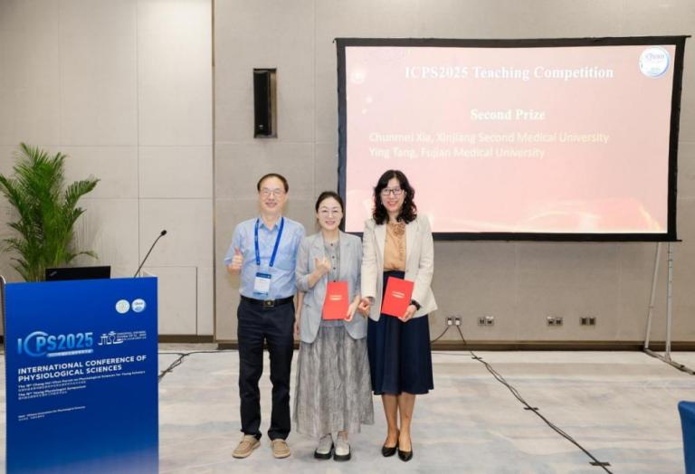 2025年10月9日,国际生理学学术大会教师讲课大赛于浙江杭州国际博览中心落幕。该赛事由中国生理学会教育工作委员会主办,是生理学教学领域高水平赛事。决赛采用“15分钟英文现场授课+教学设计展示”形式,a片动画 生理学与病理生理学系唐影副教授凭借出色的全英文教学表现,以流利英文、清晰逻辑及科学的教学设计,践行“以学生为中心”理念,从全国多所高校优秀教师中脱颖而出,荣获大赛二等奖,充分展现a片动画 教师扎实的专业功底和卓越的教学风采。