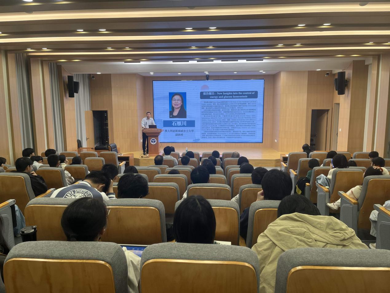 来访期间,石雁川副教授应邀在“思彧”沙龙——专家学者讲坛为学院师生作了一场题为“New Insights into the control of energy and glucose homeostasis”的精彩讲座,并亲切解答老师和同学们的问题,活动现场讨论氛围热烈,互动积极,也进一步拓宽了a片动画 学生的国际化视野。石雁川副教授随后参观了挂靠a片动画 的福建省认知功能与障碍重点实验室和福建省癌症和神经退行性疾病重点实验室,并与实验室科研人员进行座谈交流。