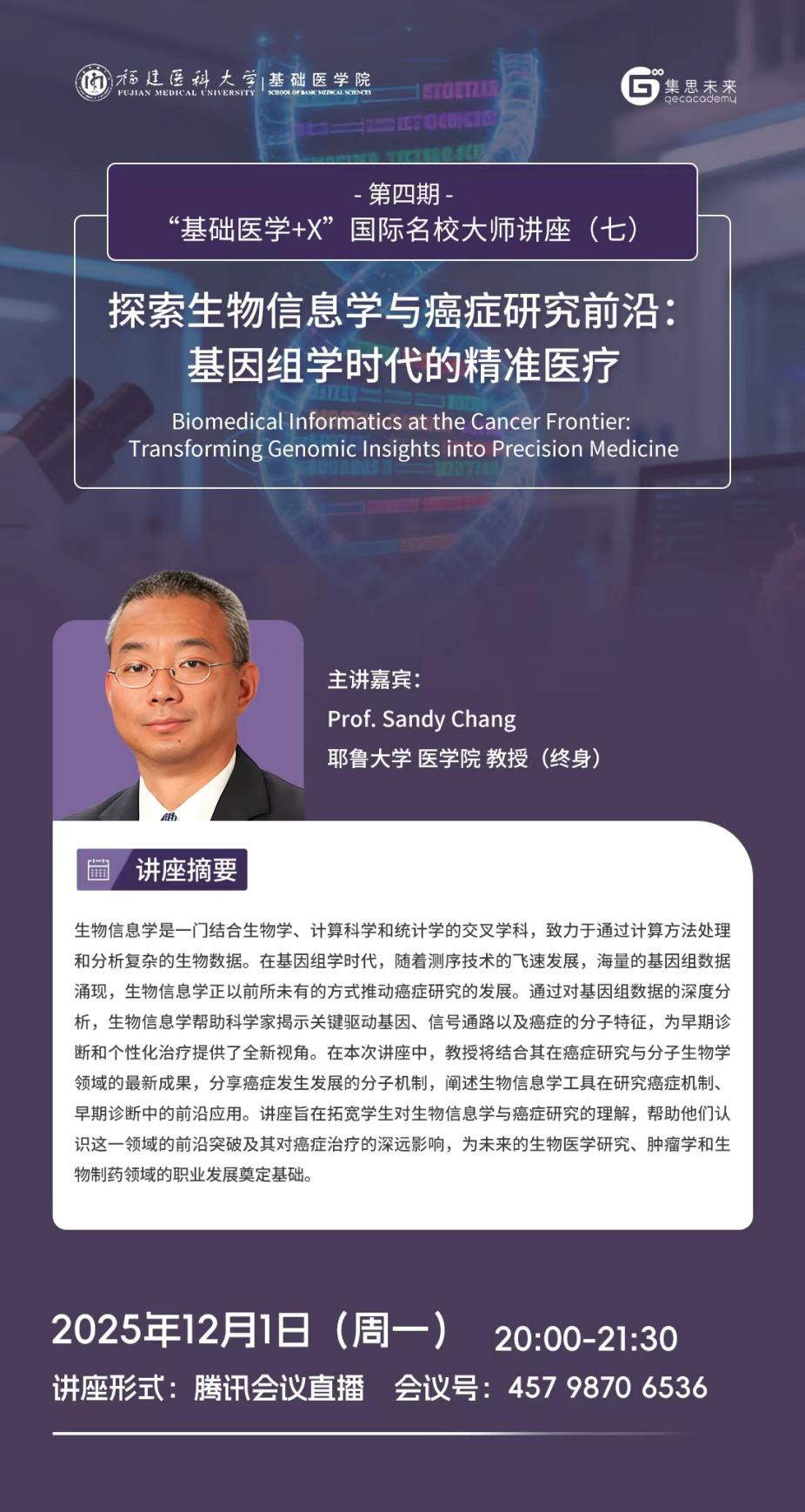 为促进学生了解以人工智能、大数据为代表的新一轮科技革命和产业变革下锚定基础医学疾病诊疗与研究的前沿研究方向与方法,探索医学与其他学科的交叉应用,培养国际化视野,探讨国际研究趋势和动态。a片动画 联合天津集思教育集团继续开展第四期“基础医学+X”国际名校大师讲座,主讲嘉宾为来自全球一流高等学府和研究机构的9位知名教授。现将该系列讲座(七)相关信息发布见下: