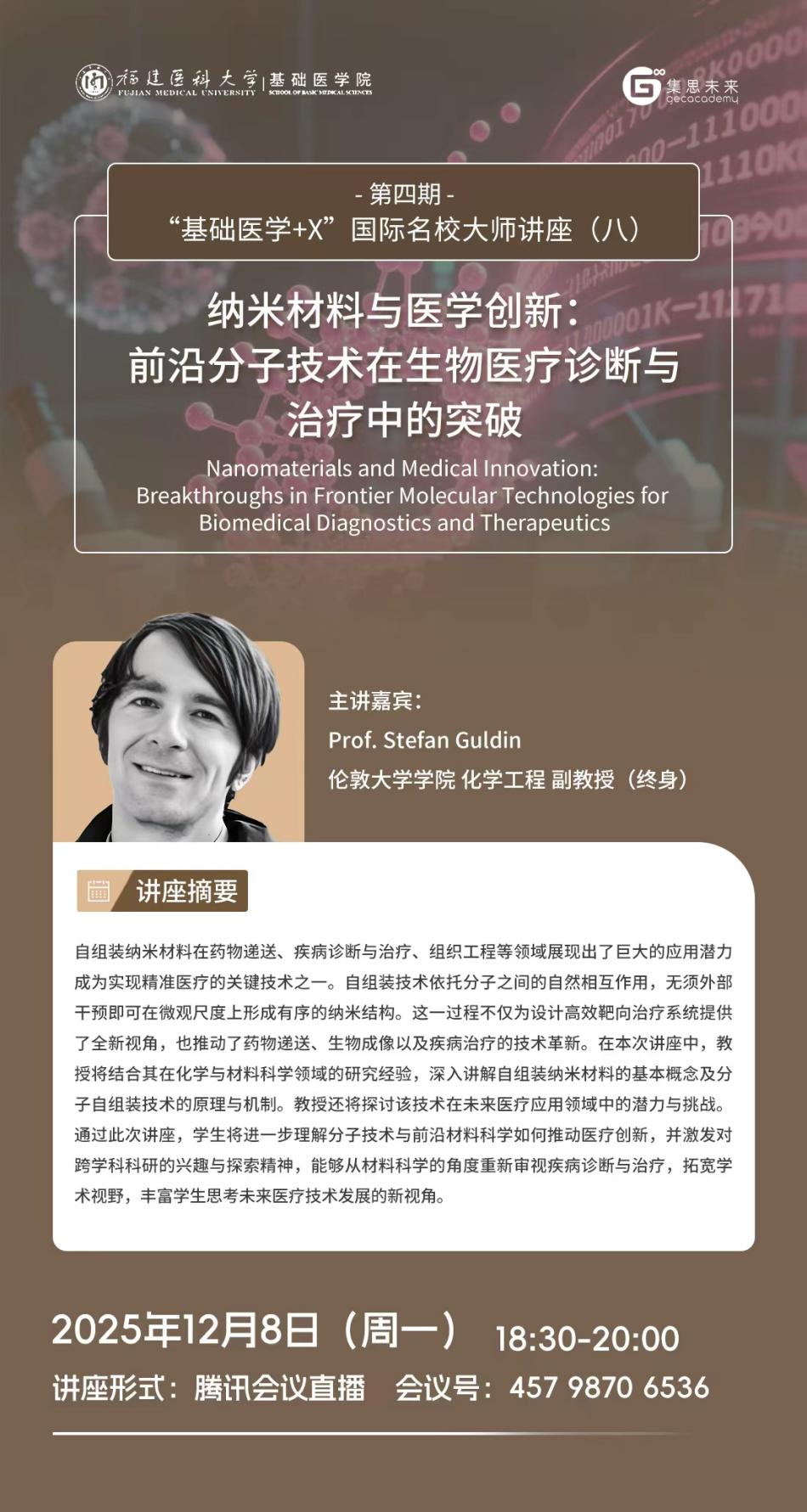 为促进学生了解以人工智能、大数据为代表的新一轮科技革命和产业变革下锚定基础医学疾病诊疗与研究的前沿研究方向与方法,探索医学与其他学科的交叉应用,培养国际化视野,探讨国际研究趋势和动态。a片动画 联合天津集思教育集团继续开展第四期“基础医学+X”国际名校大师讲座,主讲嘉宾为来自全球一流高等学府和研究机构的9位知名教授。现将该系列讲座(八)相关信息发布见下: